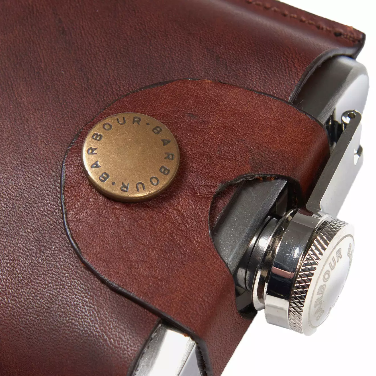 Store your beverage with the Barbour 4ox Hip Flask. Crafted from a stainless steel, with a hinged screw top lid, a luxury waxed leather cover and a Barbour branded stud fastening closure. Coming with a branded gift box, this is ideal for anyone who appreciates superiorly crafted products or spending time in the countryside.