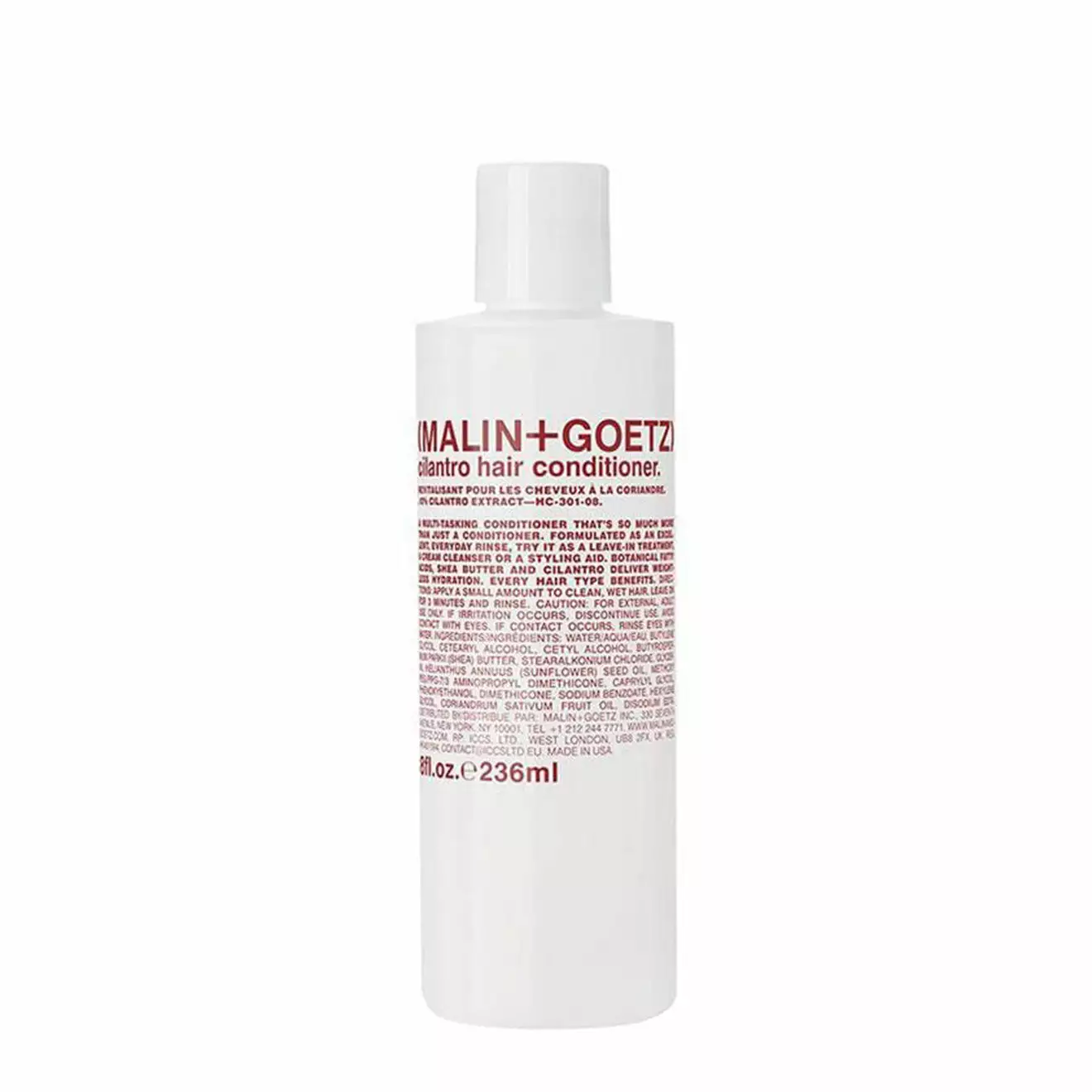 The Malin + Goetz Cilantro Hair Conditioner 236ml is gentle against the hair, detangling and using natural cilantro extract with absorbent fatty acids and fatty alcohols to effectively hydrate all hair and scalp types. + fatty acids deliver lightweight yet intense hydration. + shea butter moisturizes. + cilantro extract calms.