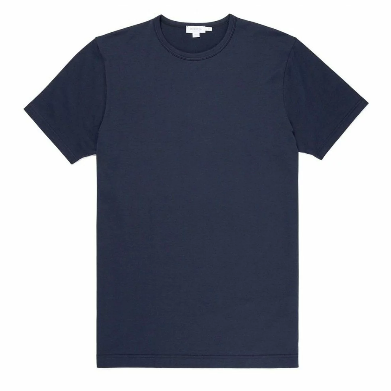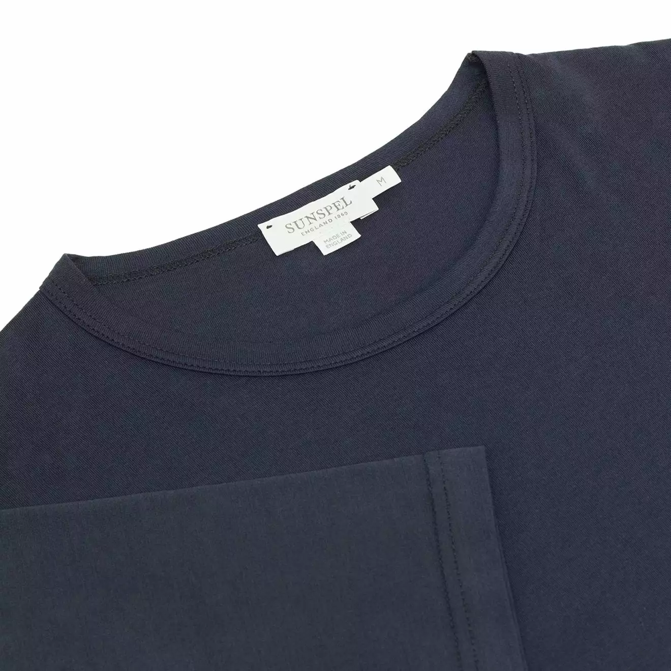 The Sunspel Classic Crew T-Shirt Navy is constructed from 100% Pima cotton and features a classic fit, crew neckline and short sleeves.