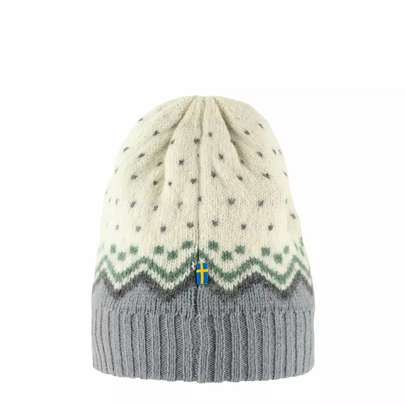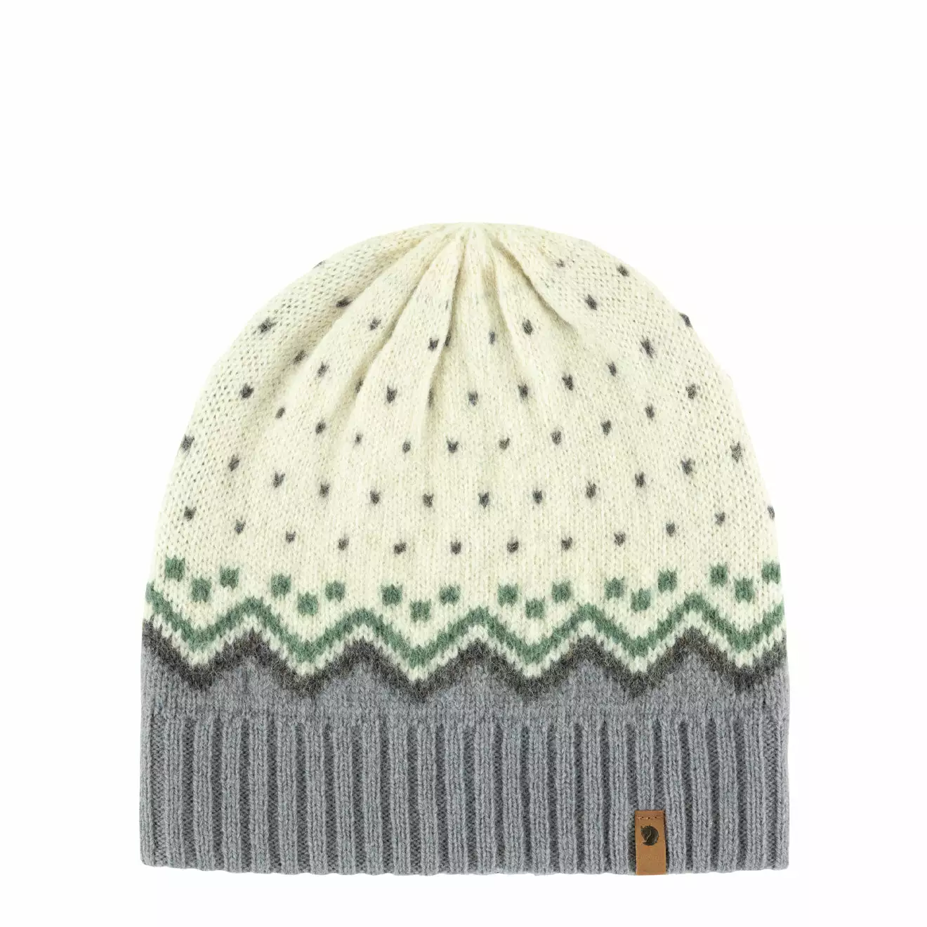 Knitted hat in soft, traceable wool for everyday outdoor life in cold temperatures. Attractive patterned knitting inspired by Fjällräven’s popular Övik Knit Sweater. Ribbed edge and folded leather logo on the side. The wool is ethically produced and traceable