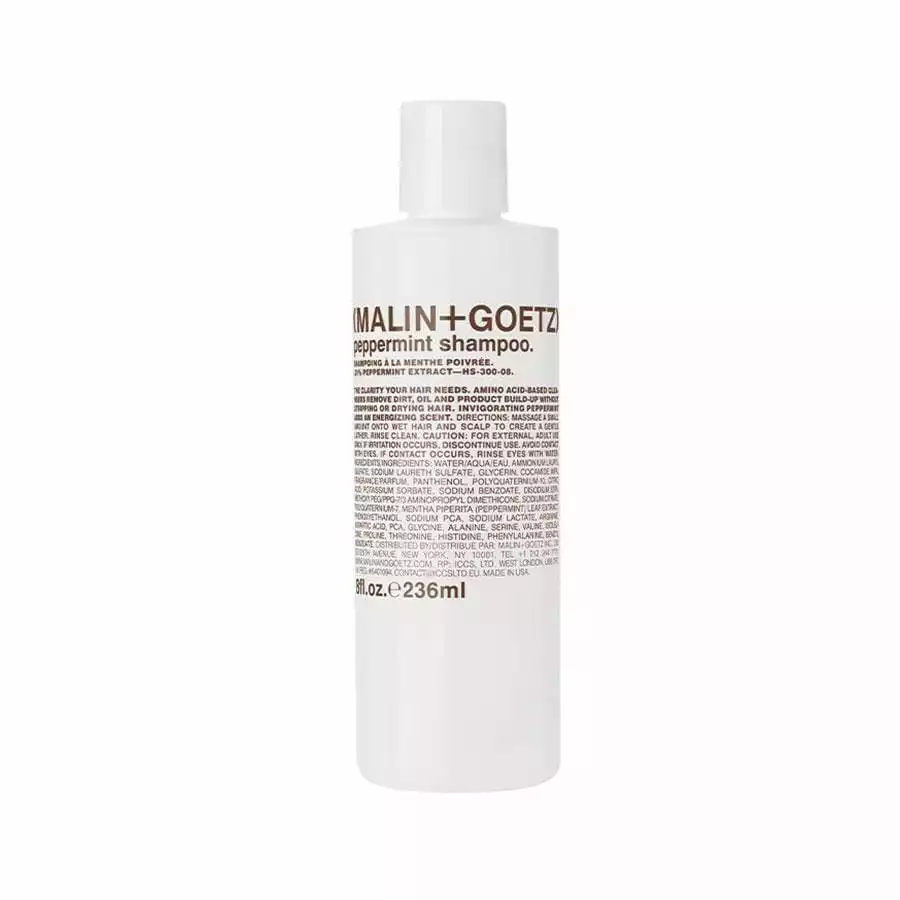 The Malin + Goetz Peppermint Shampoo is mildly foaming, using amino acid-based cleansing agents to balance all hair and scalp types without drying, stripping, irritating or leaving build-up.