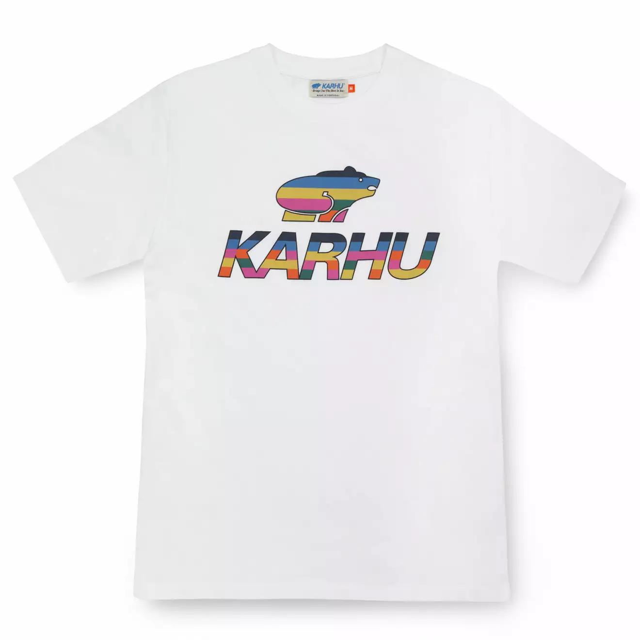 Karhu’s iconic logo and brand name sit proudly on the front of the Team College t-shirt. Back in the ’80s, this colorful logo was featured in sportswear when technicolor was used. Karhu’s iconic rainbow design is now officially known as the Team College Big Logo T-Shirt.